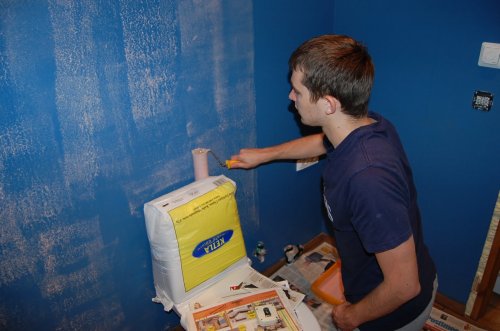 Esimene samm edasi tegutsemisel oli igaks juhuks nakkedispersiooniga seinade üle käimine, kuna kahtlesime, et äkki siledale värvitud seinale ei jää need kivid hästi kinni.